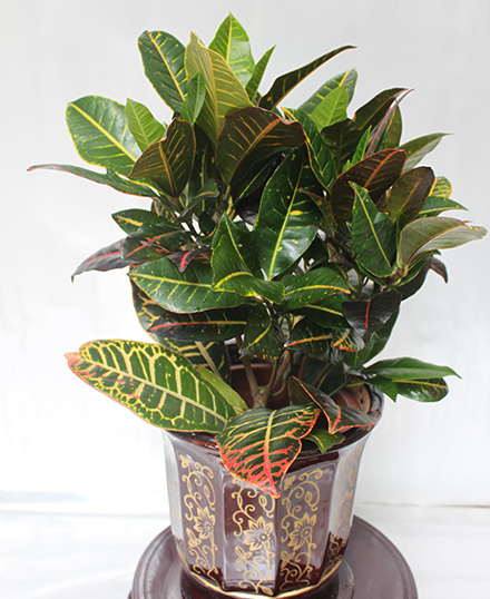變?nèi)~木亦稱變色月桂。大戟科灌木或小喬木,葉革質(zhì),色彩鮮豔、光亮。常盆栽,在熱帶為灌叢。原產(chǎn)馬來西亞及太平洋地區(qū)。可高達(dá)6公尺(20呎)。葉片含花青素,單色或綠、黃、白、橙、粉紅、紅、大紅及紫等,諸色相雜