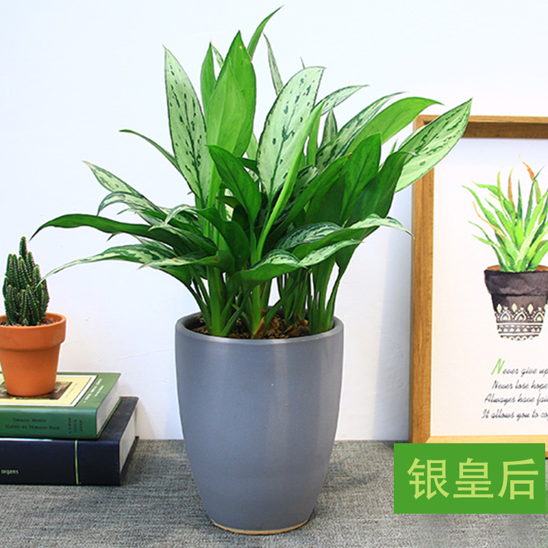 銀皇后又名銀后萬年青、銀后粗肋草、銀后亮絲草,天南星科為多年生草本植物。株高30-40厘米,莖直立不分枝,節(jié)間明顯。葉互生,葉柄長,基部擴大成鞘狀,葉狹長,淺綠色,葉面有灰綠條斑,面積較大。